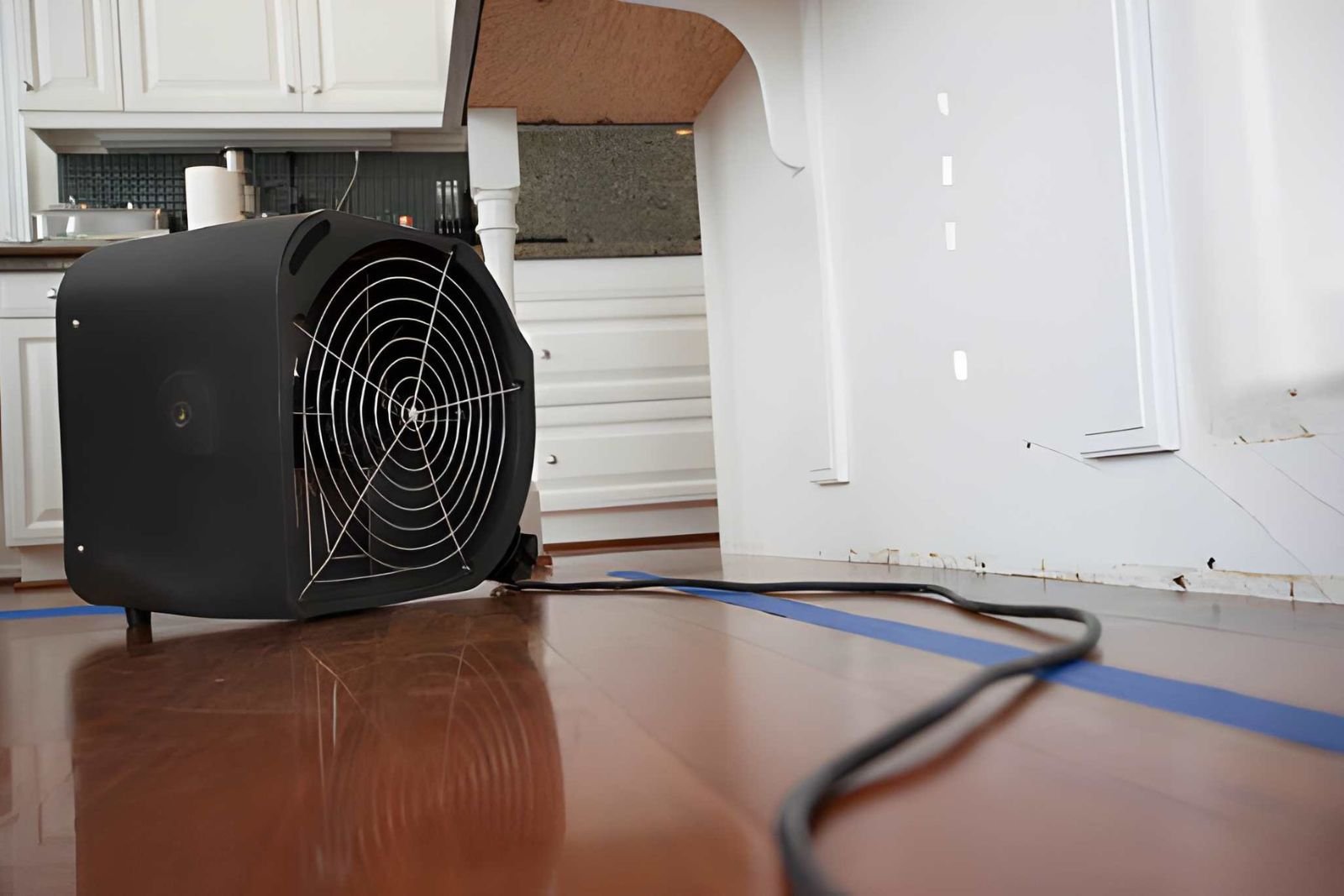 Crews use HEPA filters and negative air to stop spread. We set up industrial fans to start the drying process.